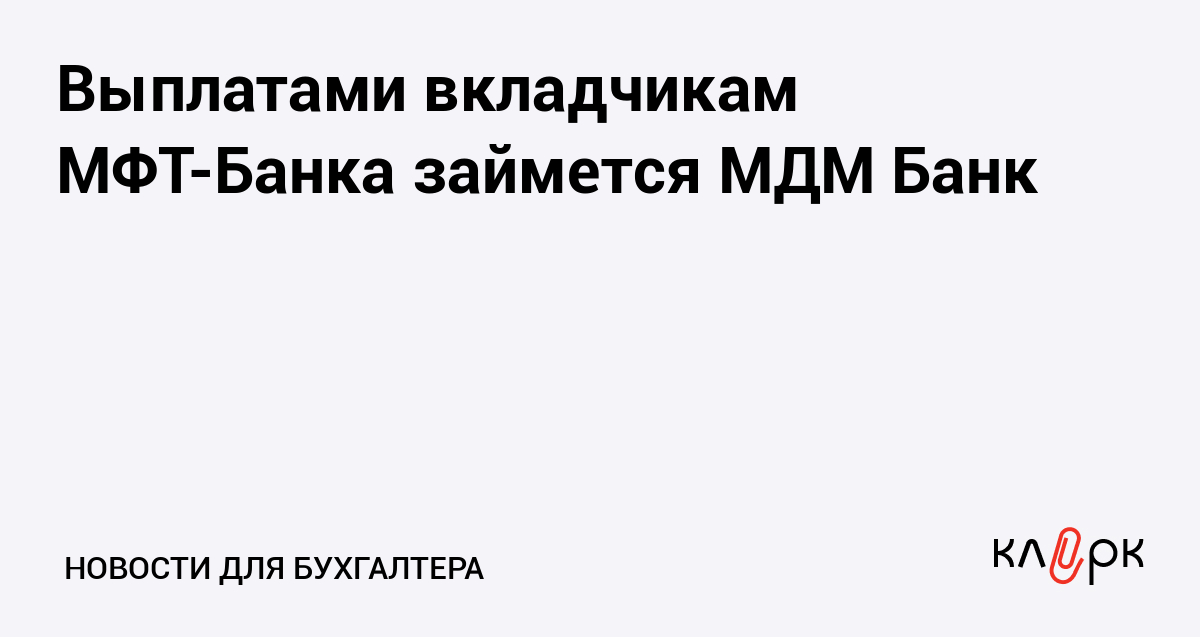 Выплатами вкладчикам МФТ-Банка займется МДМ Банк