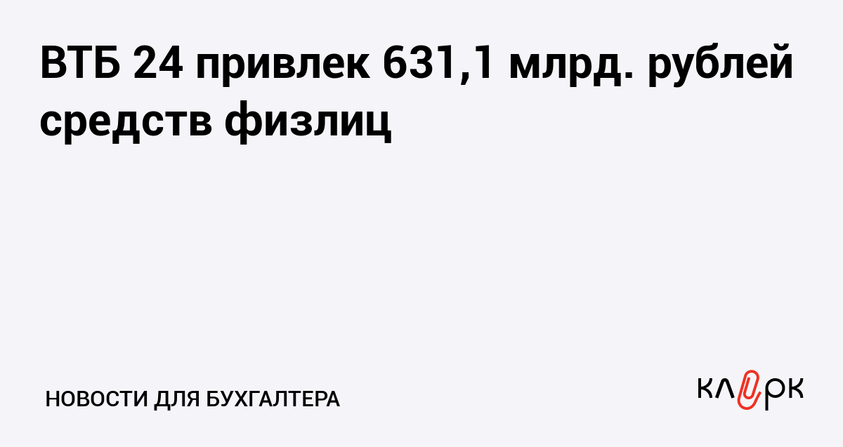 ВТБ 24 привлек 631,1 млрд. рублей средств физлиц