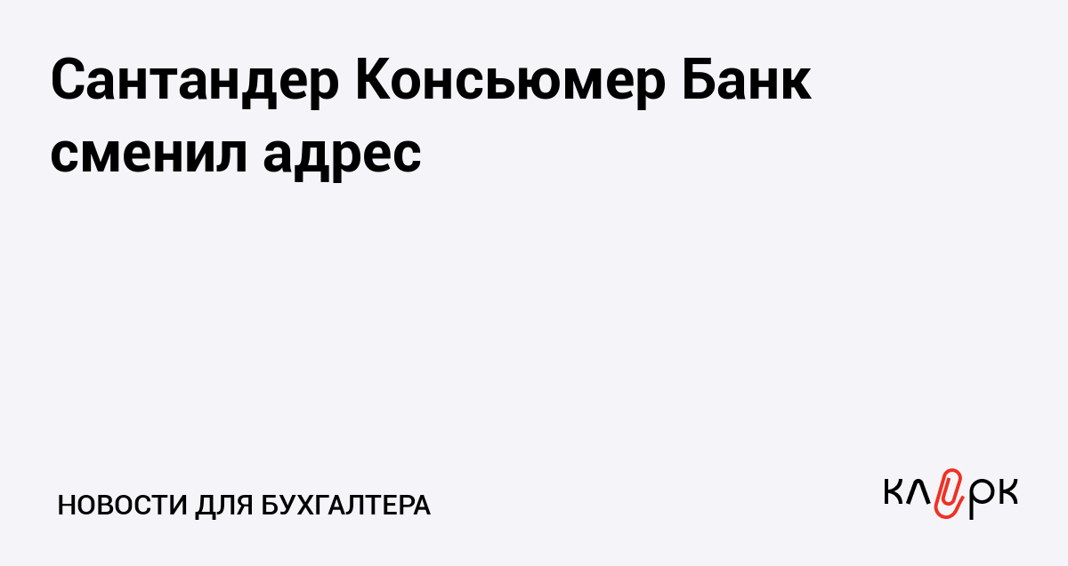 ЗАО «Сантандер Консьюмер Банк» поменял свое местонахождение с 24 января 2011 года. Новый адрес банка: г. Москва, Садовническая набережная, дом 9