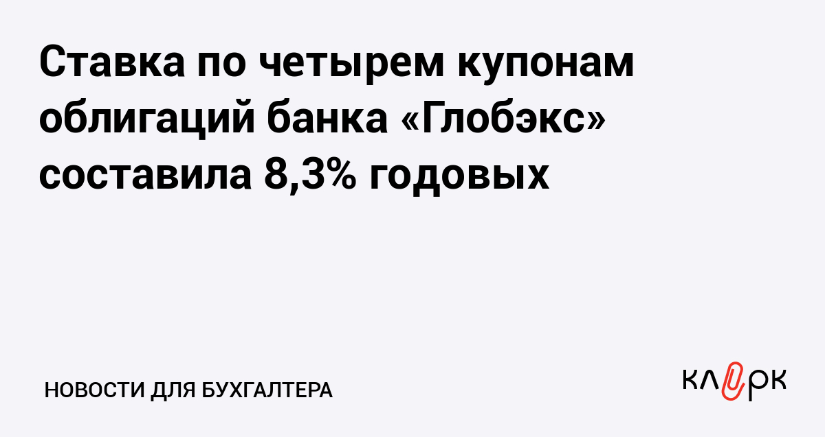 Ставка по четырем купонам облигаций банка «Глобэкс» составила 8,3% годовых