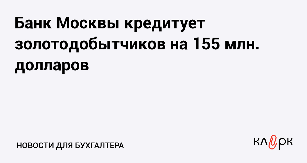 Банк Москвы кредитует золотодобытчиков на 155 млн. долларов