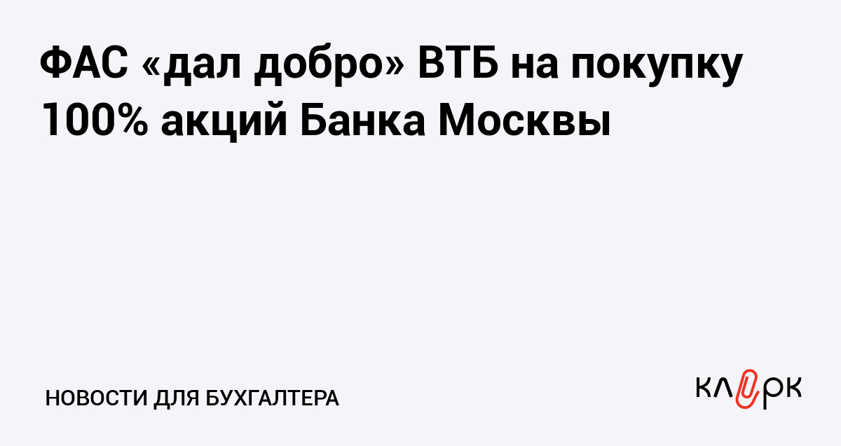 ФАС «дал добро» ВТБ на покупку 100% акций Банка Москвы