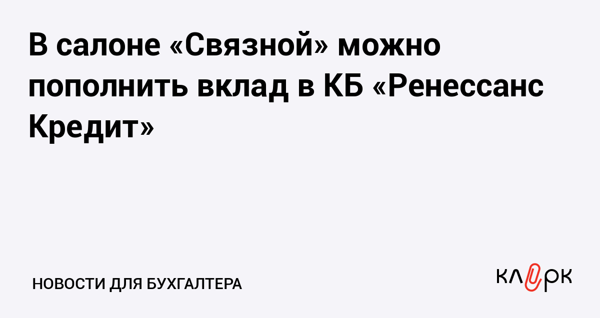 В салоне «Связной» можно пополнить вклад в КБ «Ренессанс Кредит»