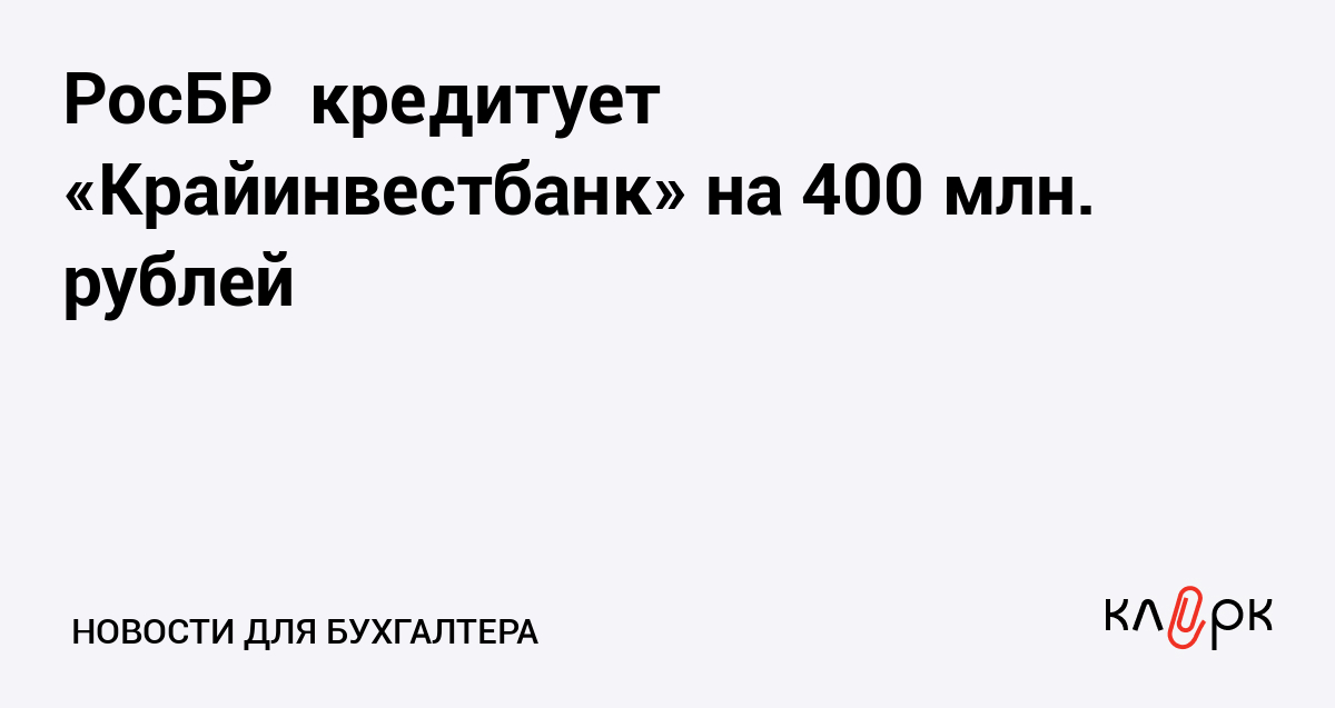РосБР кредитует «Крайинвестбанк» на 400 млн. рублей