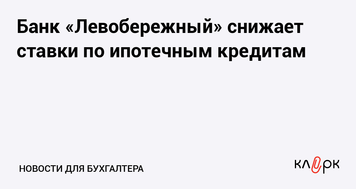 Банк «Левобережный» снижает ставки по ипотечным кредитам