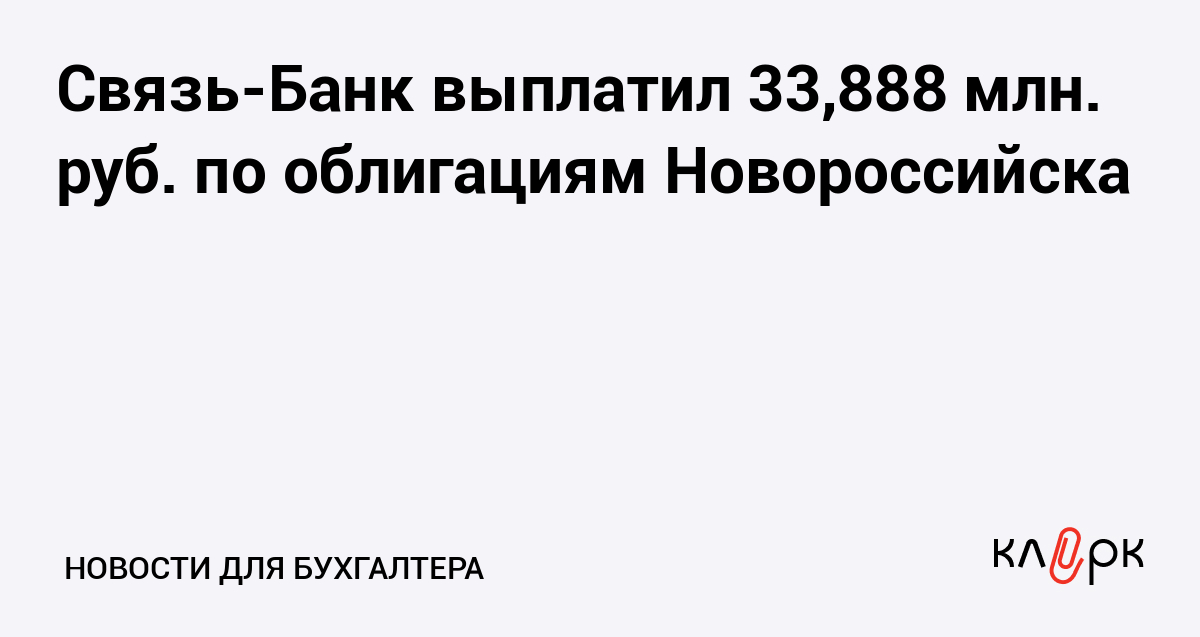 Связь-Банк выплатил 33,888 млн. руб. по облигациям Новороссийска