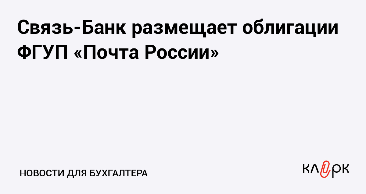 Связь-Банк размещает облигации ФГУП «Почта России»