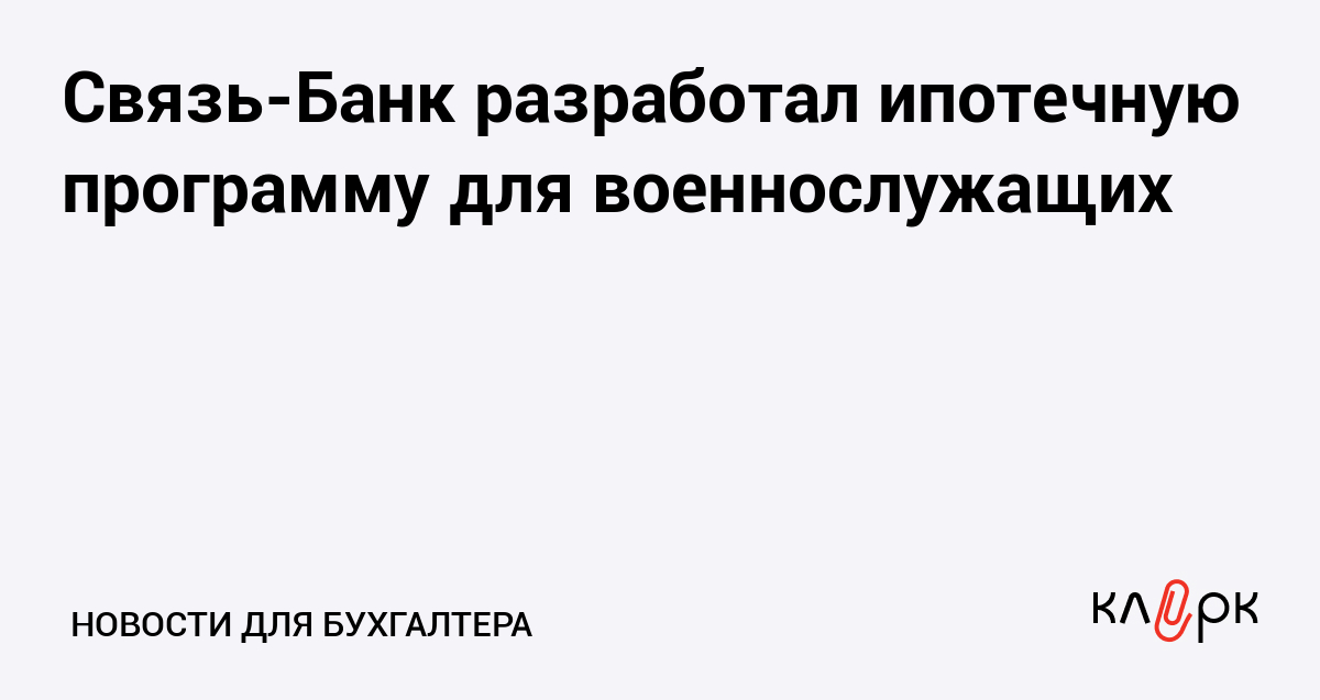 Связь-Банк разработал программу «Военная ипотека», в рамках которой ипотечный кредит могут оформить военнослужащие через 3 года после их вступления в накопительно-ипотечную систему.