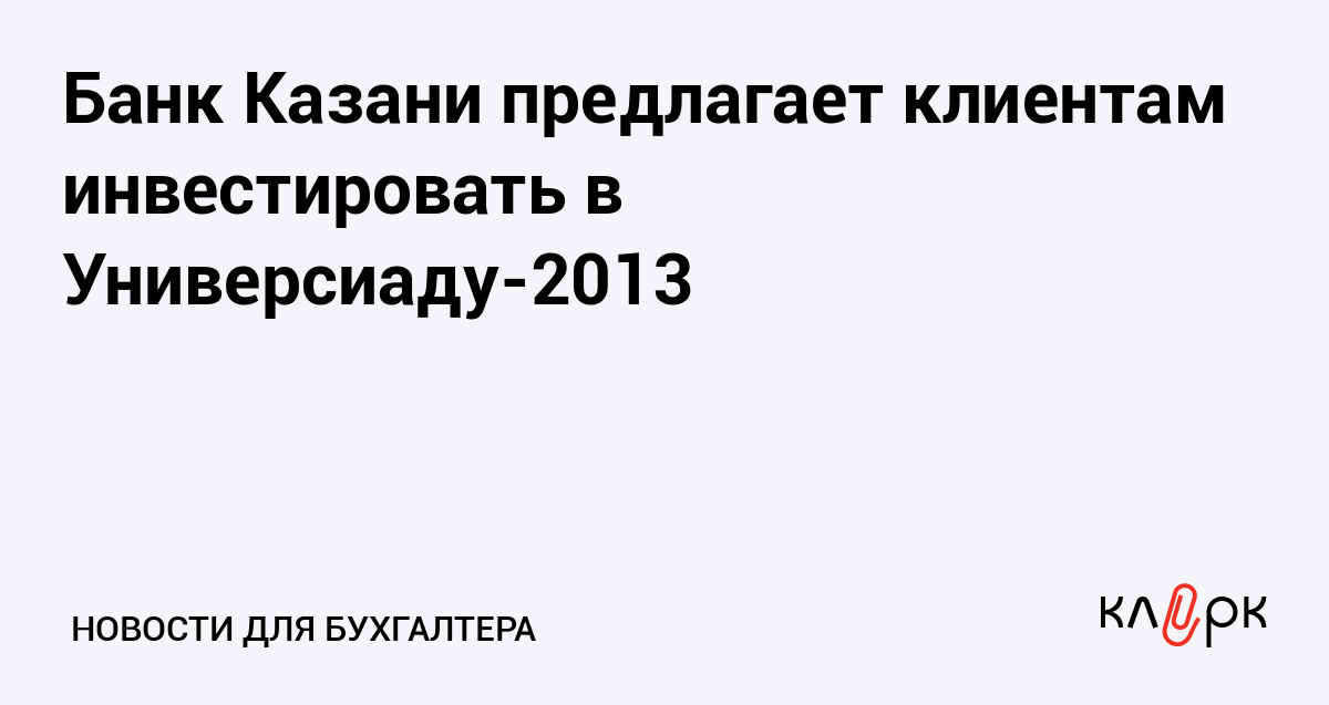 Банк Казани предлагает клиентам инвестировать в Универсиаду-2013