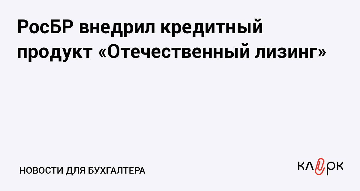 РосБР внедрил кредитный продукт «Отечественный лизинг»