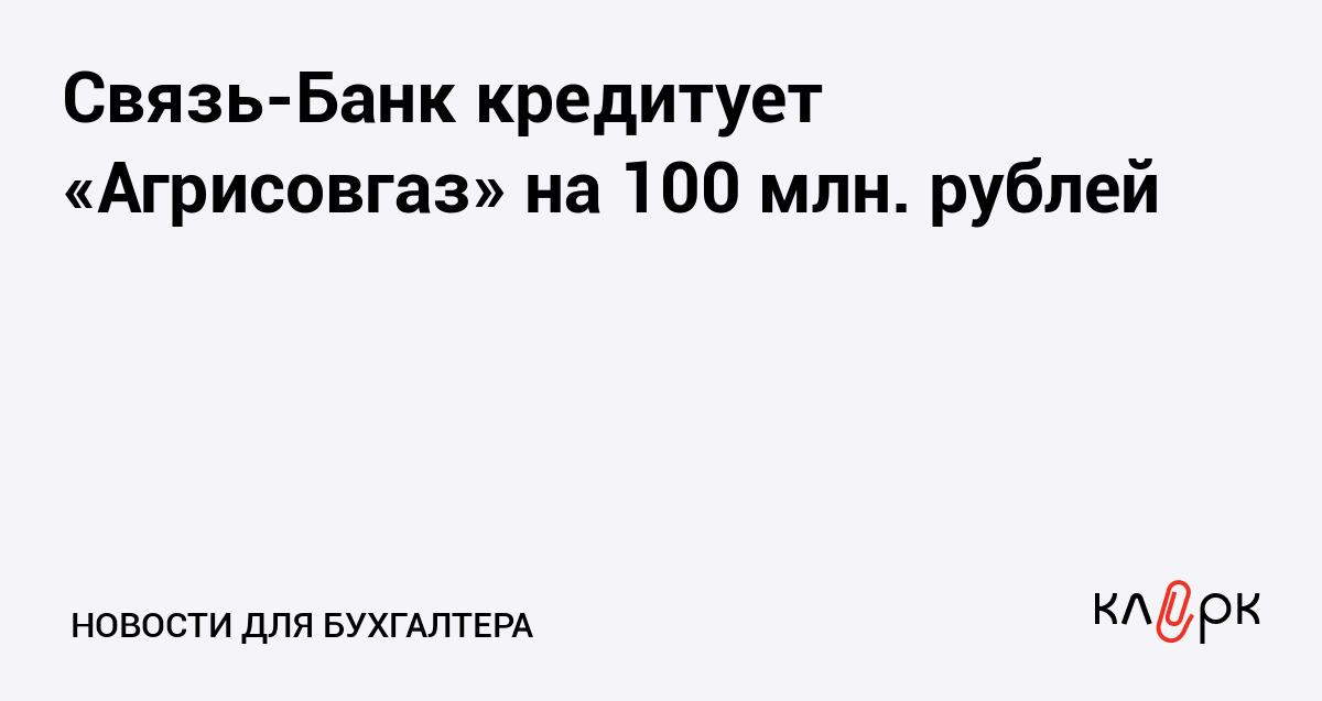 Связь-Банк кредитует «Агрисовгаз» на 100 млн. рублей