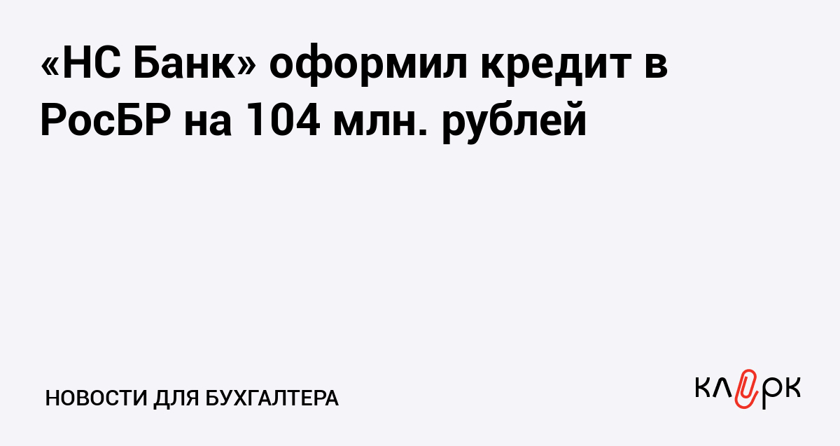 «НС Банк» оформил кредит в РосБР на 104 млн. рублей