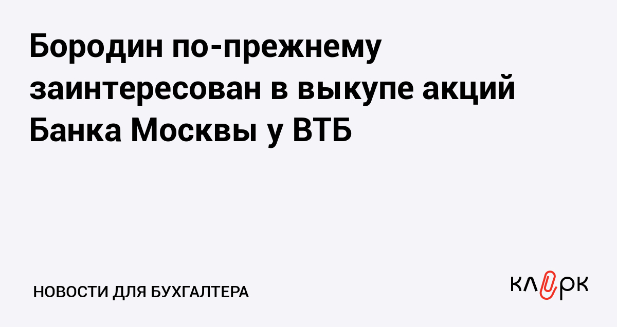 Бородин по-прежнему заинтересован в выкупе акций Банка Москвы у ВТБ