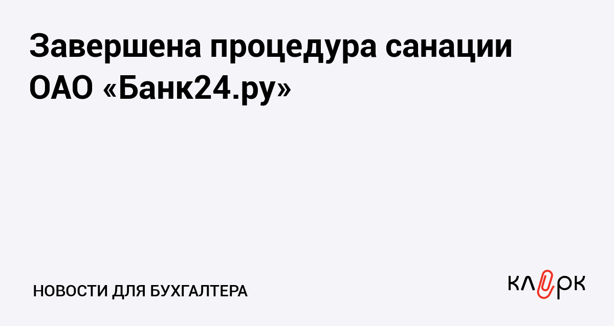 Как сообщает департамент внешних и общественных связей Банка России, Банк24.ру стабилизировал свою деятельность, достигнуто бесперебойное проведение расчетов по счетам корпоративных и частных клиентов, исполнение обязательств Банка и выполнение всех пруденциальных норм деятельности. Предпринятые меры позволили устранить причины возникновения оснований для осуществления мер по предупреждению банкротства Банка и завершить проведение указанных мер.