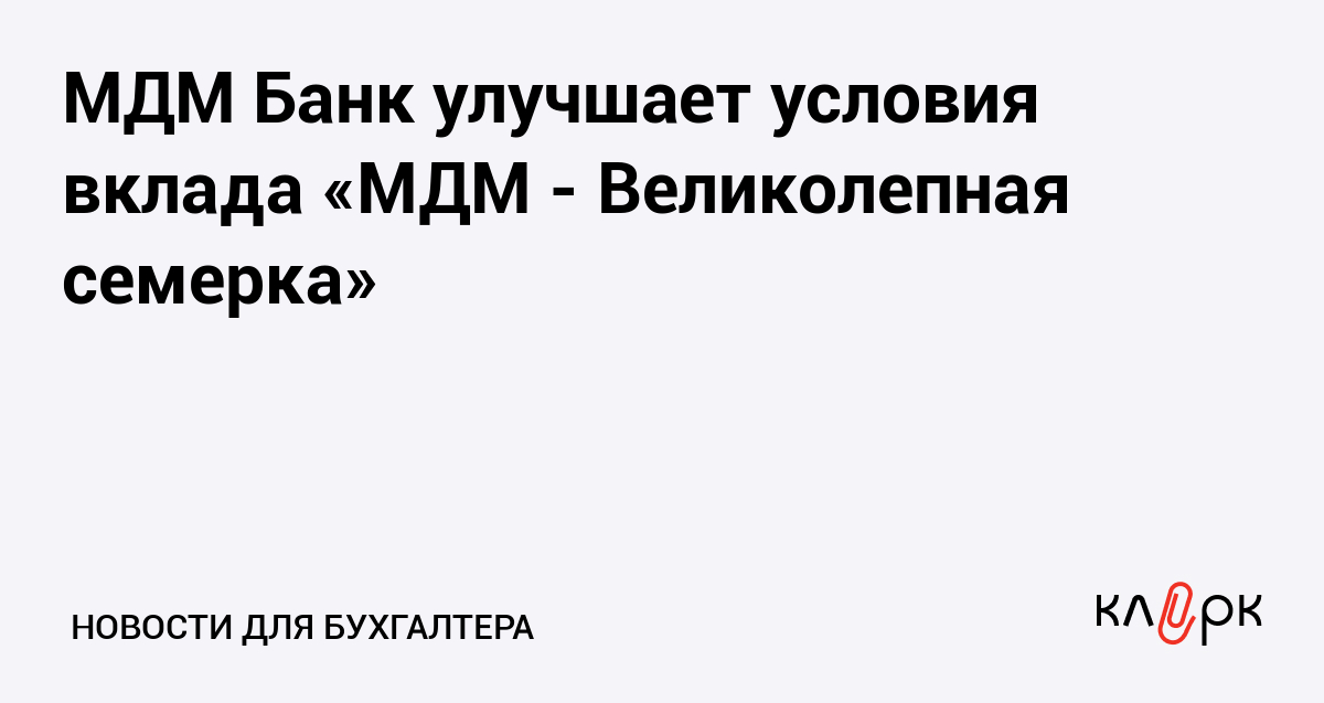 МДМ Банк изменил условия вклада «МДМ - Великолепная семерка», продлив срок, на который можно разместить средства.