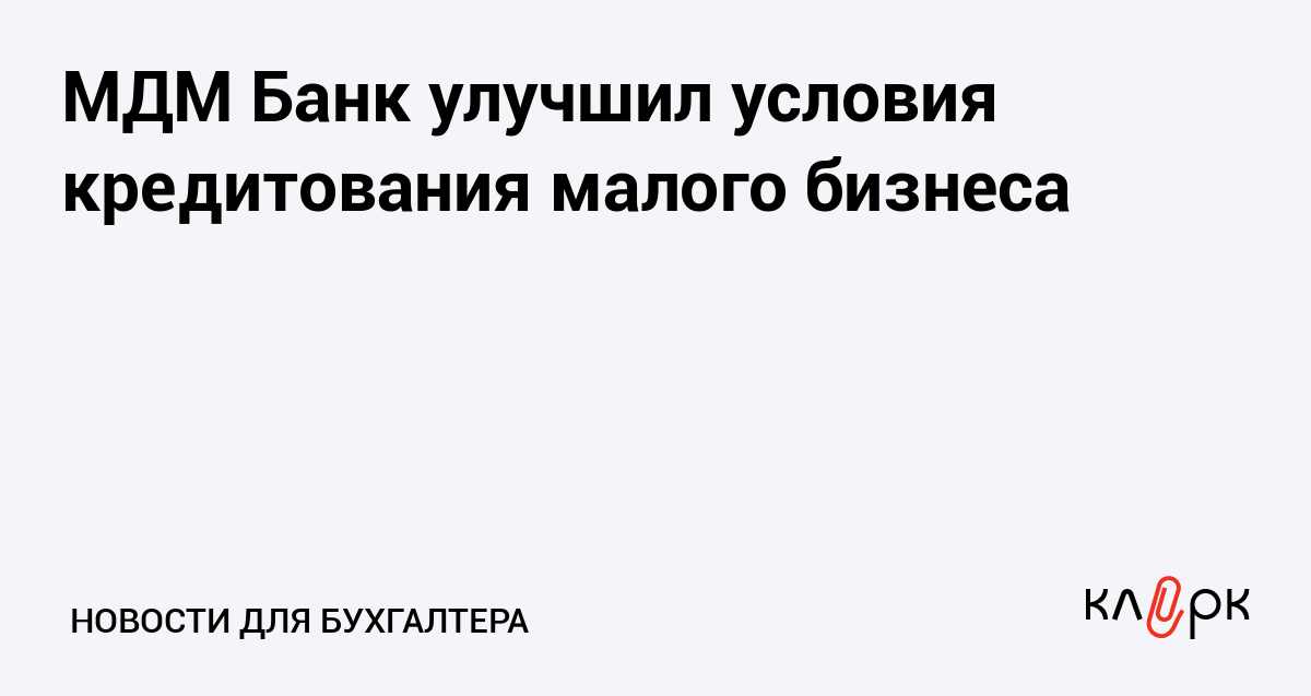 МДМ Банк улучшил условия кредитования малого бизнеса