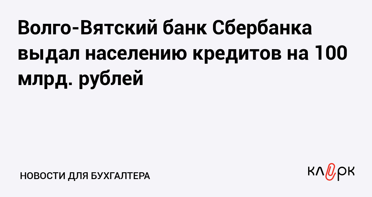 Волго-Вятский банк Сбербанка выдал населению кредитов на 100 млрд. рублей