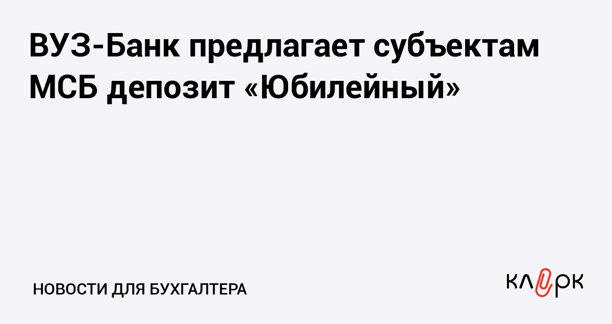 ВУЗ-Банк предлагает субъектам МСБ депозит «Юбилейный»