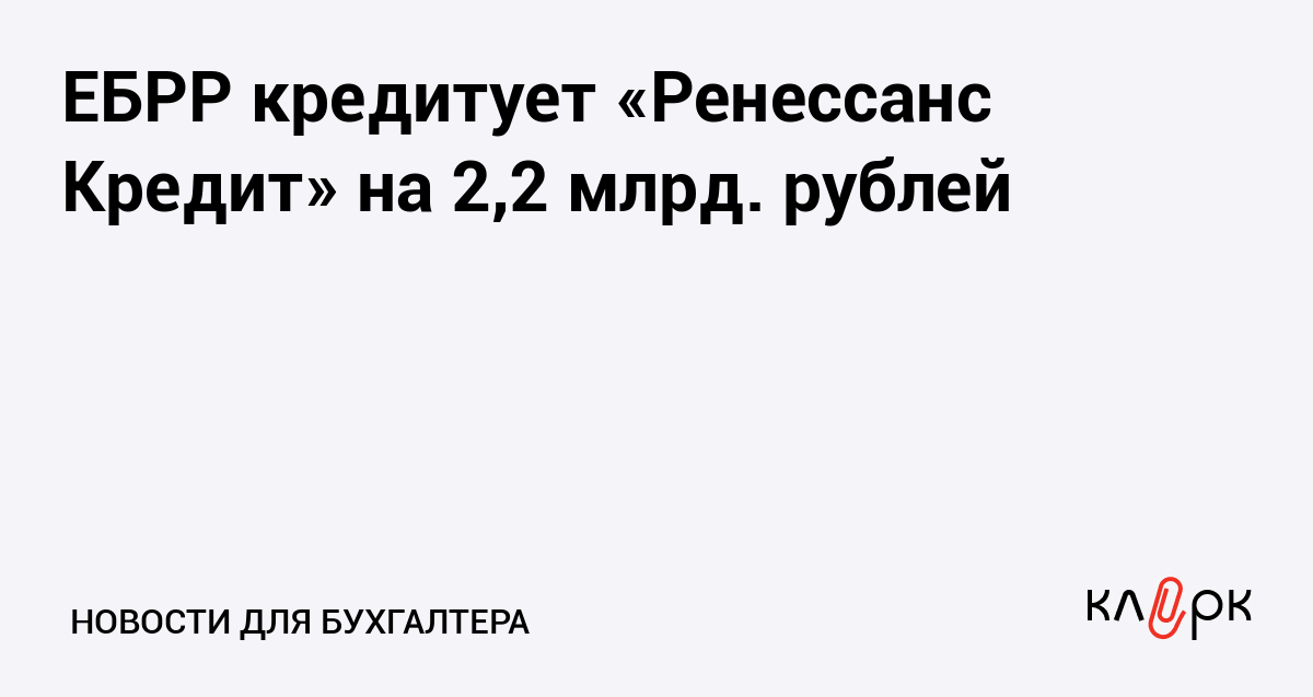 ЕБРР кредитует «Ренессанс Кредит» на 2,2 млрд. рублей