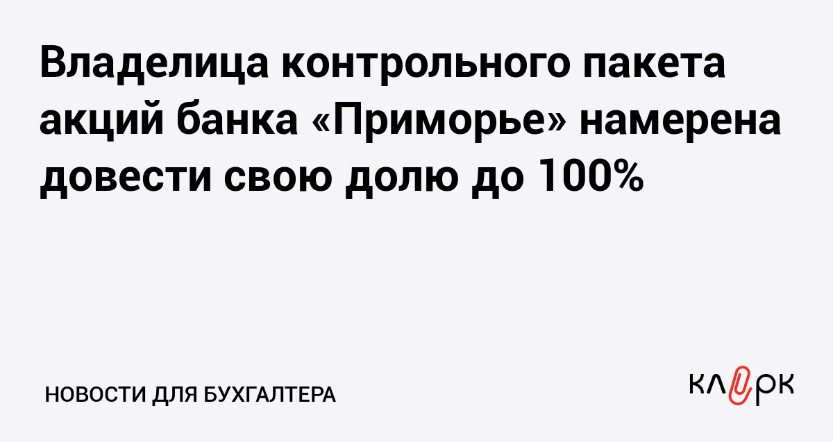 Владелица контрольного пакета акций банка «Приморье» намерена довести свою долю до 100%