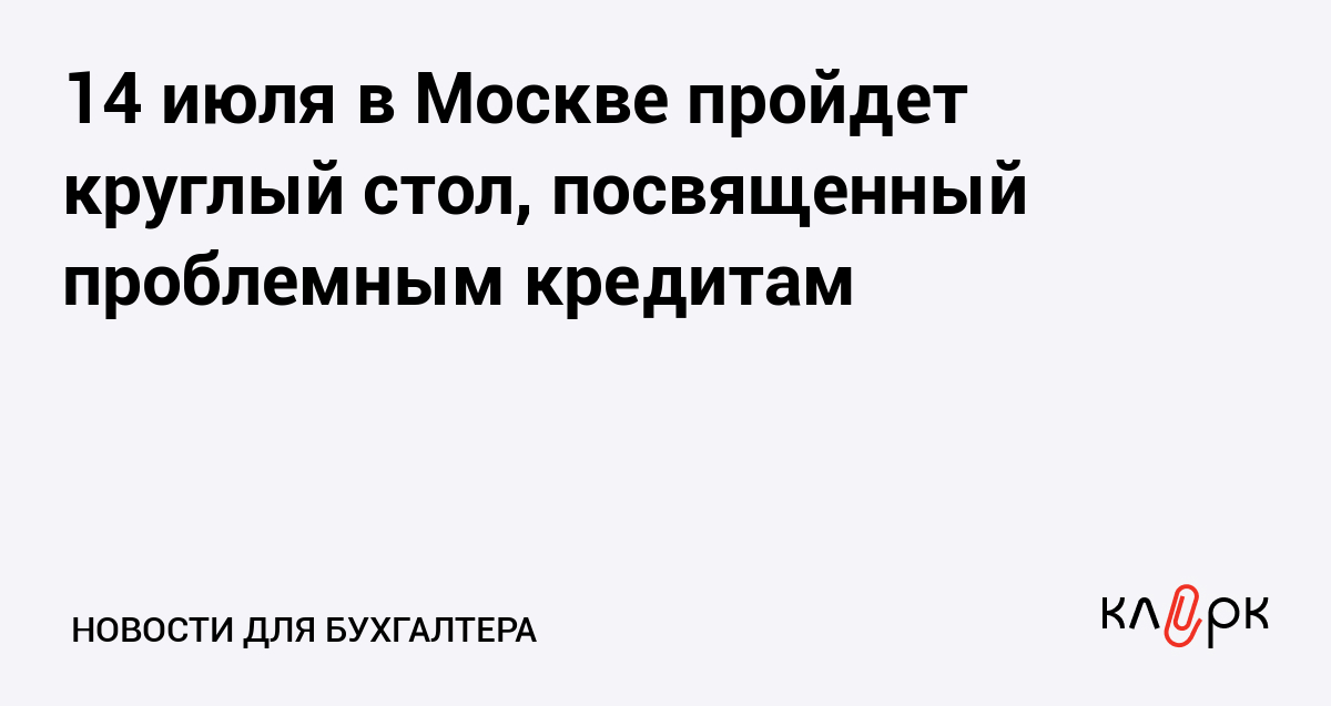 14 июля в Москве пройдет круглый стол, посвященный проблемным кредитам