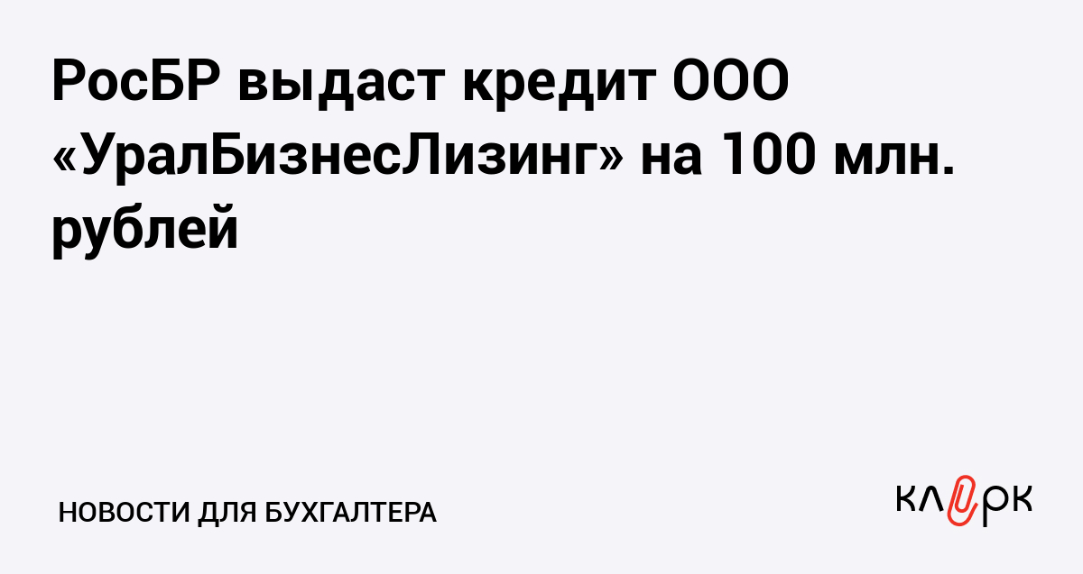 РосБР выдаст кредит ООО «УралБизнесЛизинг» на 100 млн. рублей