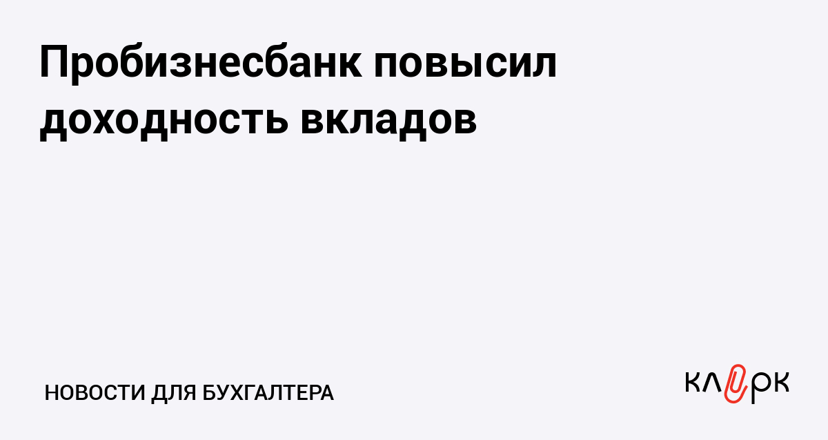 Пробизнесбанк объявил о повышении ставок по рублевым депозитам на 1% и по депозитам в евро на 0,5%. Кроме того, значительно изменились условия вклада «Доверительный». Теперь доходность этого продукта составляет до 10% годовых в рублях, до 7,5% в долларах и евро.