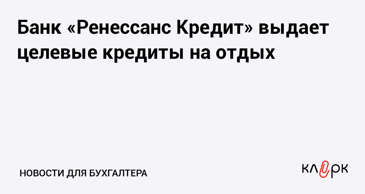 Банк «Ренессанс Кредит» выдает целевые кредиты на отдых