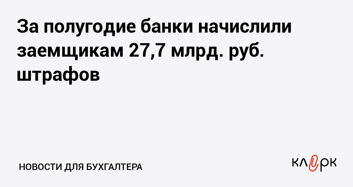 За полугодие банки начислили заемщикам 27,7 млрд. руб. штрафов