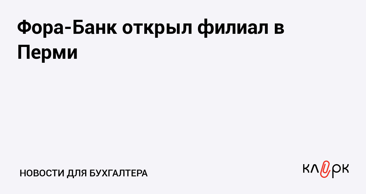 Фора-Банк открыл новый филиал - в городе Пермь. Соответствующая запись внесена в книгу регистрации Банка России 3 августа 2011 года.