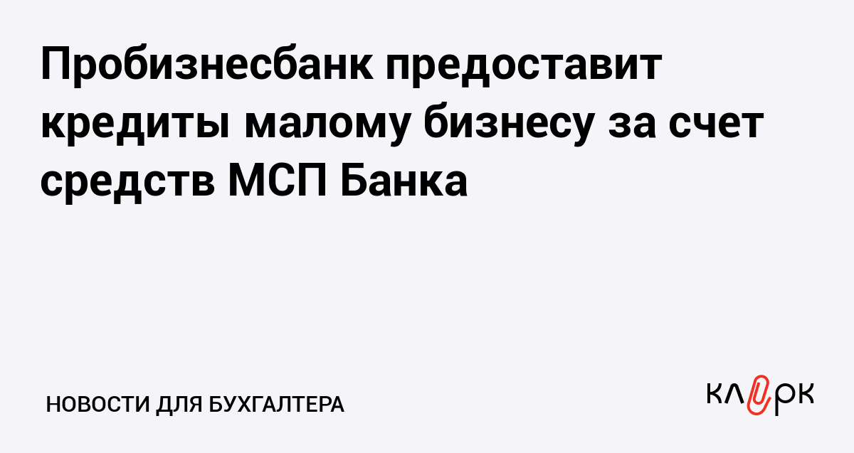Пробизнесбанк предоставит кредиты малому бизнесу за счет средств МСП Банка