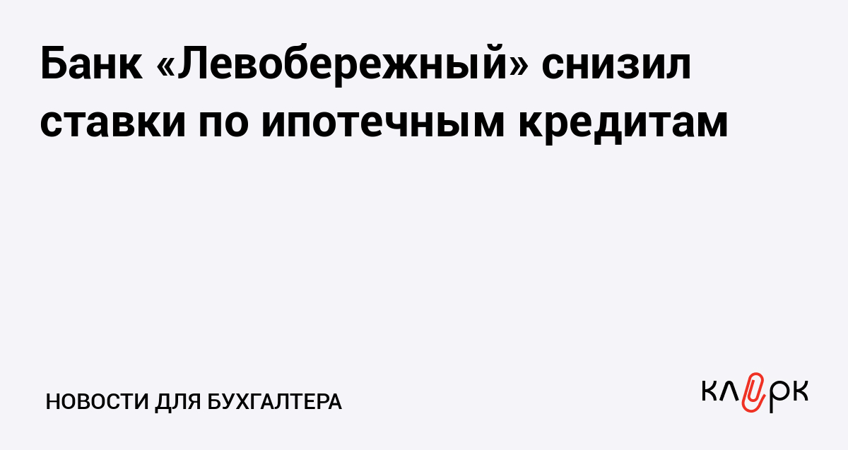 Банк «Левобережный» снизил ставки по ипотечным кредитам