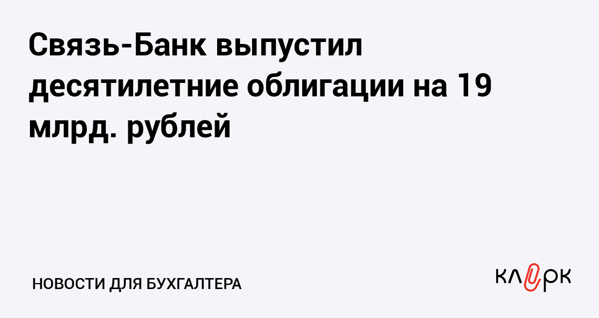 Связь-Банк выпустил десятилетние облигации на 19 млрд. рублей