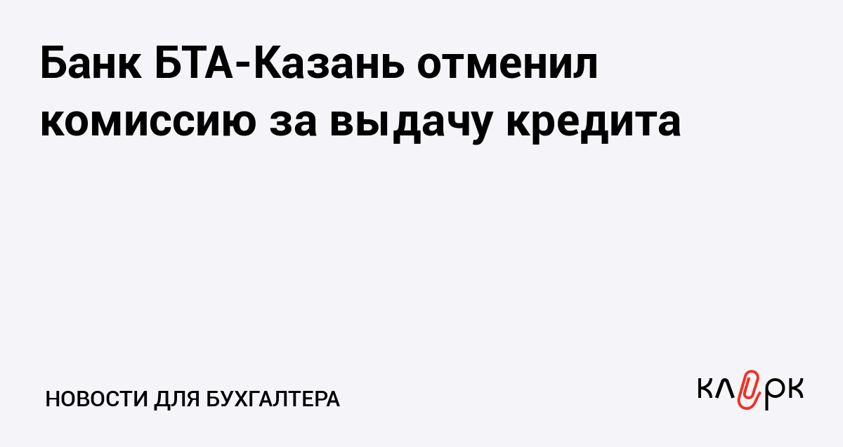 Банк БТА-Казань отменил комиссию за выдачу кредита
