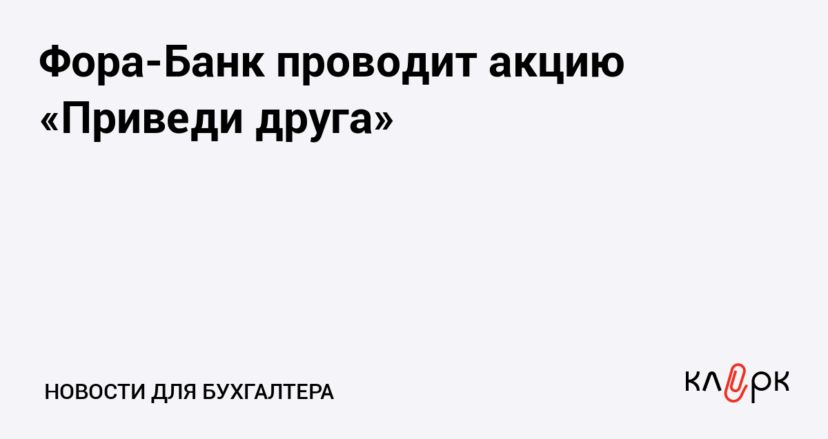 Фора-Банк проводит акцию по привлечению новых клиентов. Акция «Приведи друга» проходит под лозунгом « Ваш друг получает жилищный ипотечный кредит – Вы получаете банковскую карту с денежным вознаграждением».