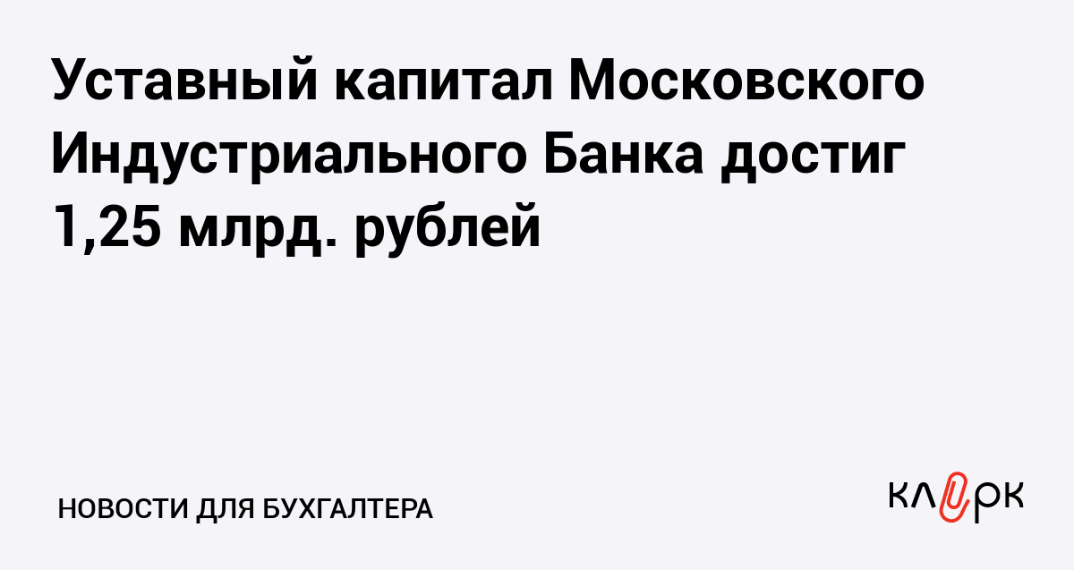Уставный капитал Московского Индустриального Банка достиг 1,25 млрд. рублей