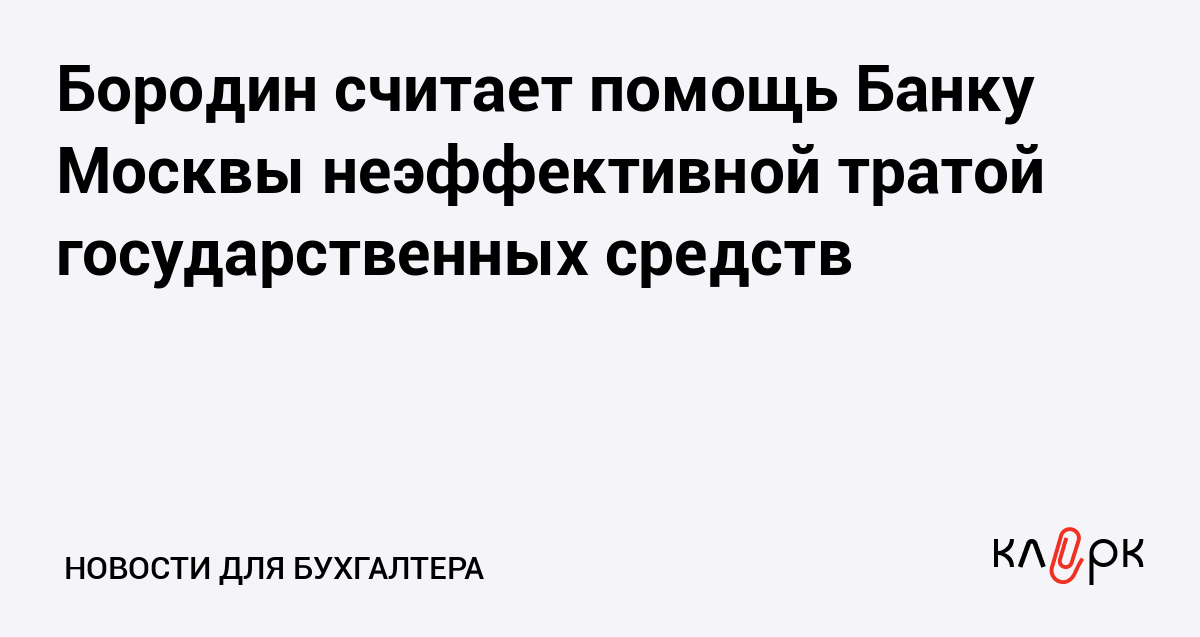 Бородин считает помощь Банку Москвы неэффективной тратой государственных средств
