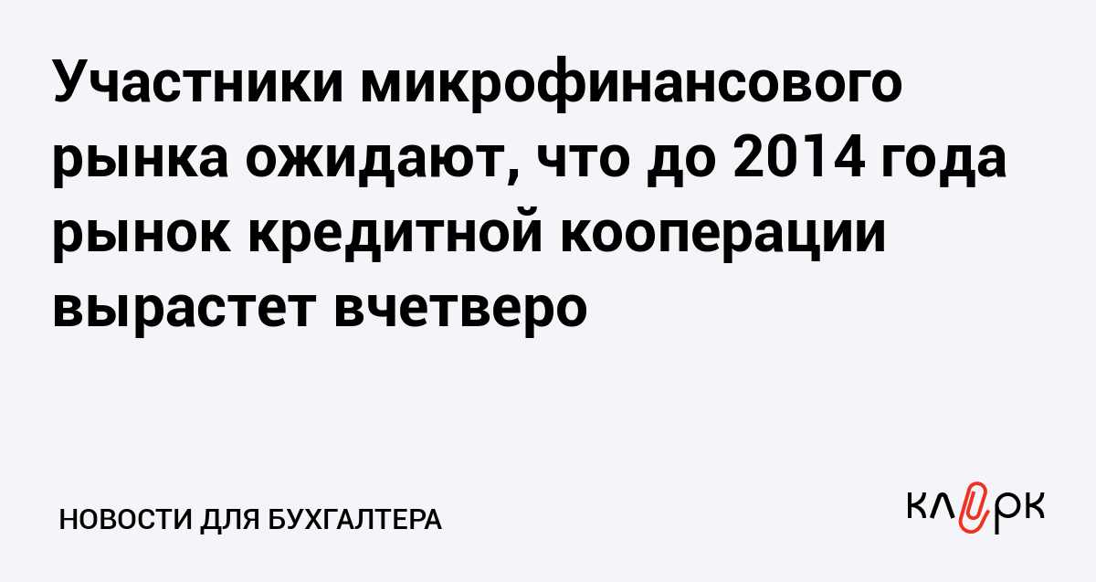 Участники микрофинансового рынка ожидают, что до 2014 года рынок кредитной кооперации вырастет вчетверо
