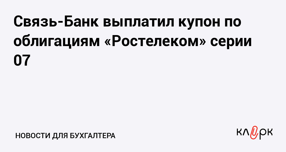 Связь-Банк выплатил купон по облигациям «Ростелеком» серии 07