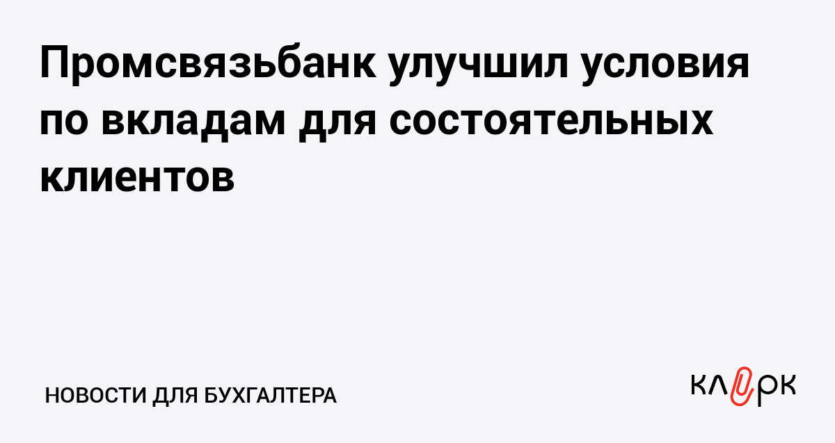 Промсвязьбанк изменил условия вкладов, которые могут открыть состоятельные клиенты банка.