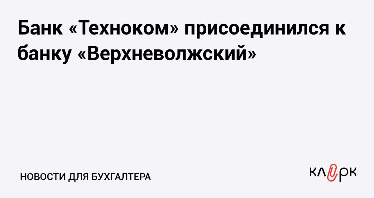 Банк «Техноком» присоединился к банку «Верхневолжский»