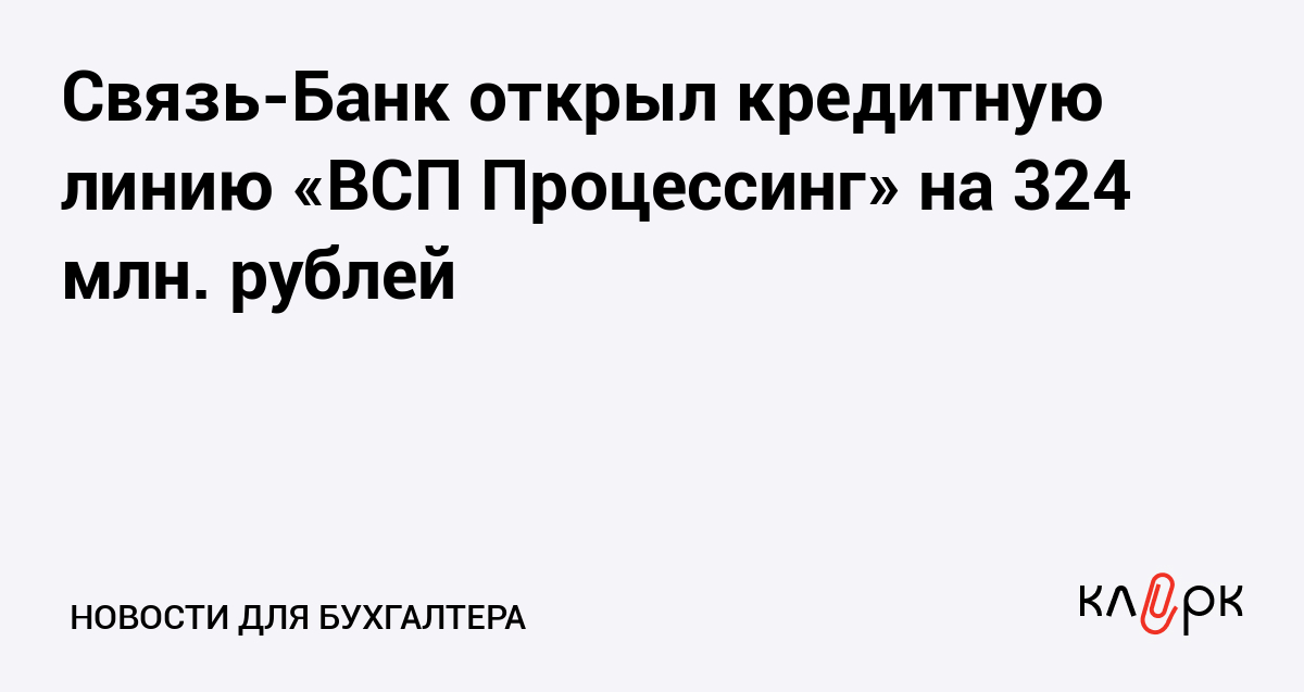 Связь-Банк открыл кредитную линию «ВСП Процессинг» на 324 млн. рублей