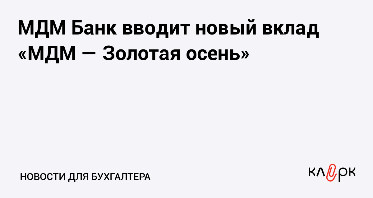 МДМ Банк пополнил линейку депозитов новым сезонным вкладом «МДМ — Золотая осень», открыть который можно в период с 1 сентября по 1 декабря 2011 года.