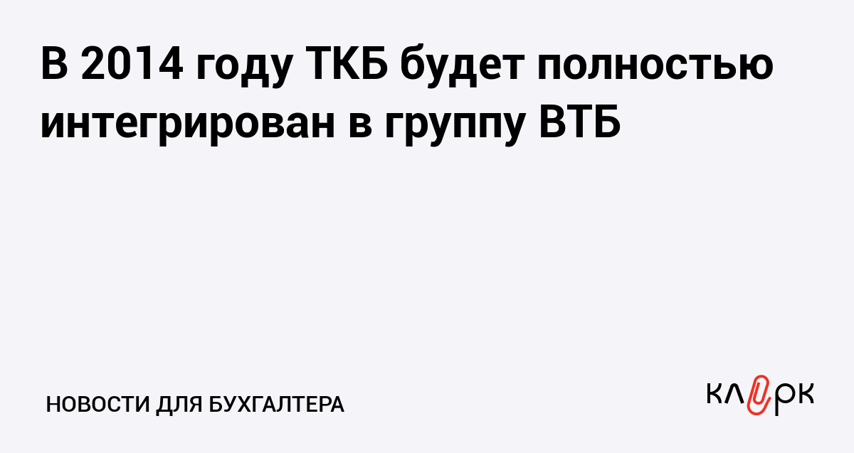 В 2014 году ТКБ будет полностью интегрирован в группу ВТБ