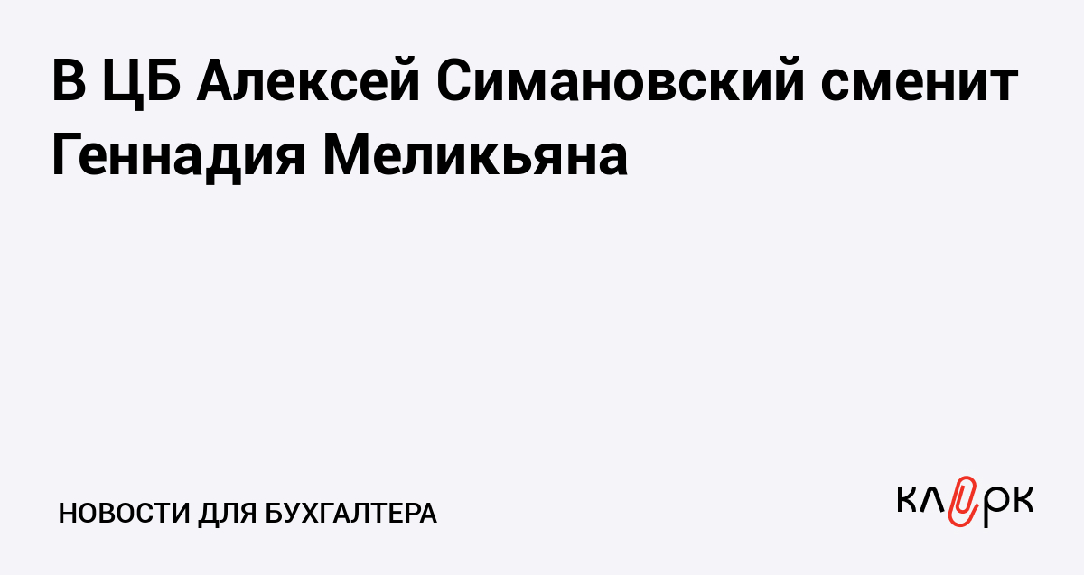 В ЦБ Алексей Симановский сменит Геннадия Меликьяна