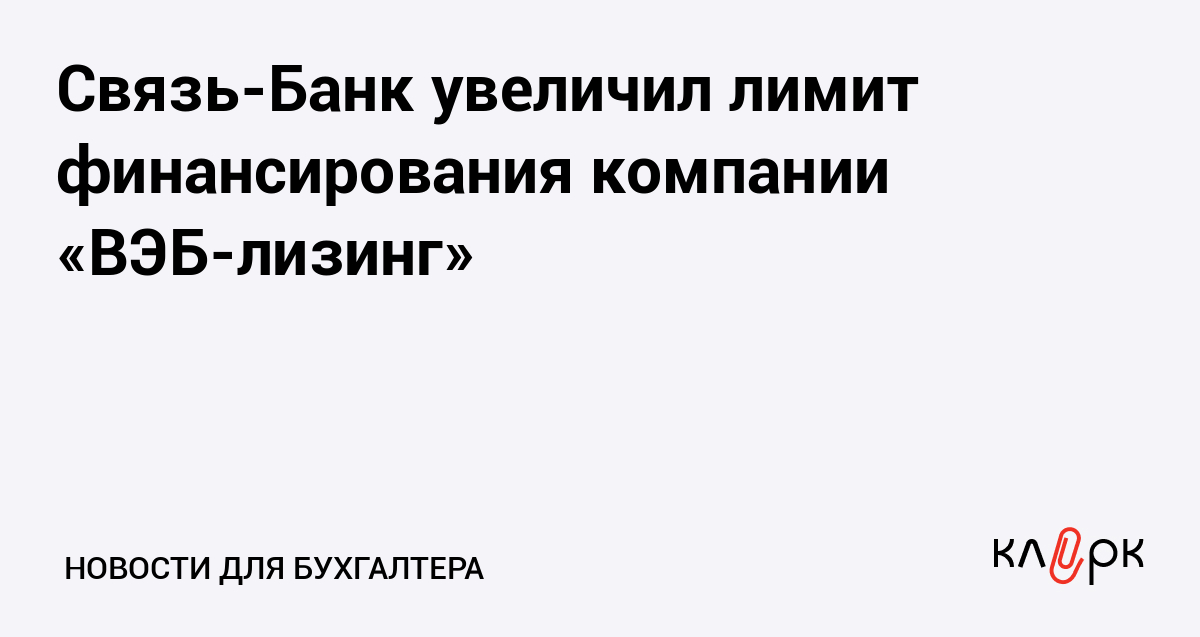 Связь-Банк увеличил лимит финансирования компании «ВЭБ-лизинг»