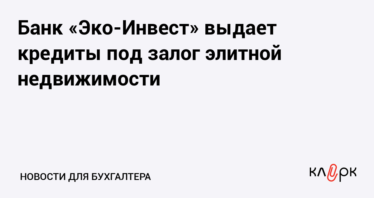 Банк «Эко-Инвест» выдает кредиты под залог элитной недвижимости