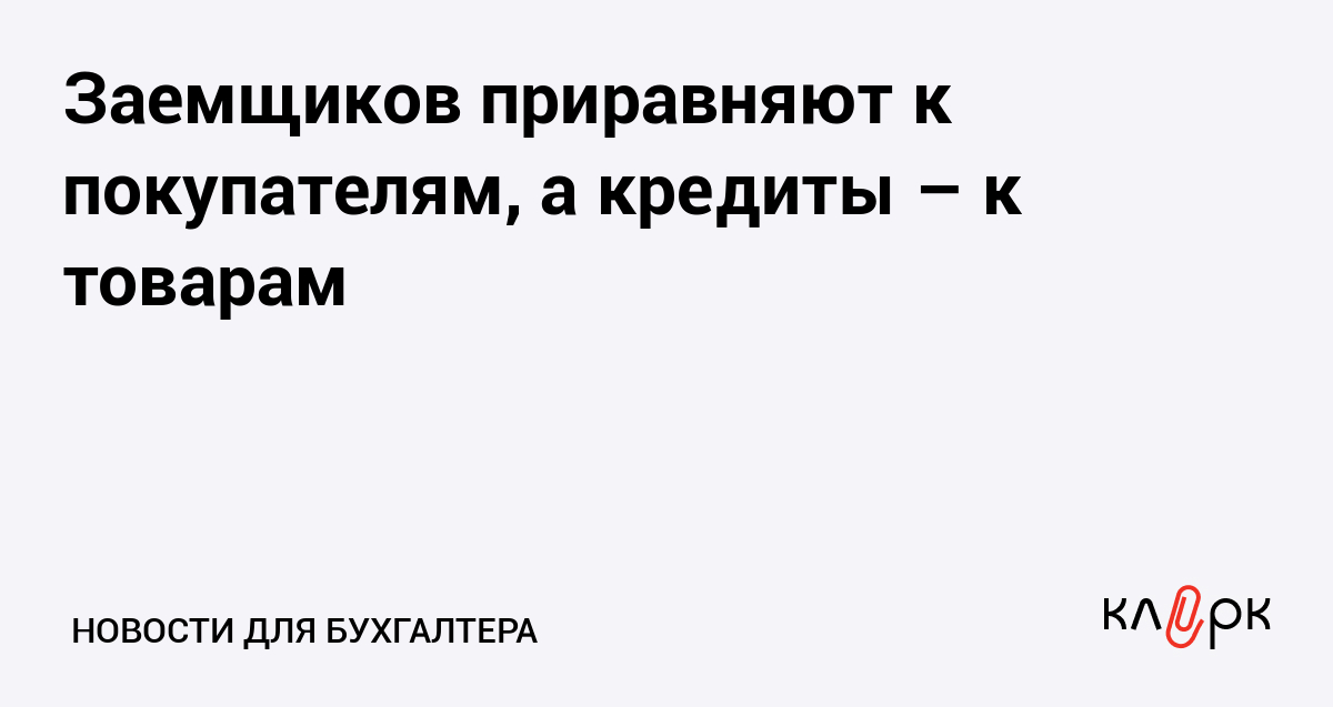 Заемщиков приравняют к покупателям, а кредиты – к товарам