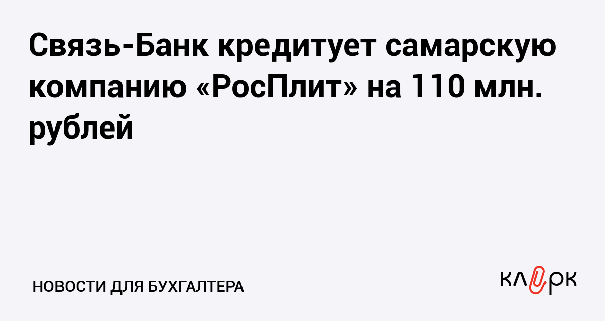 Связь-Банк кредитует самарскую компанию «РосПлит» на 110 млн. рублей