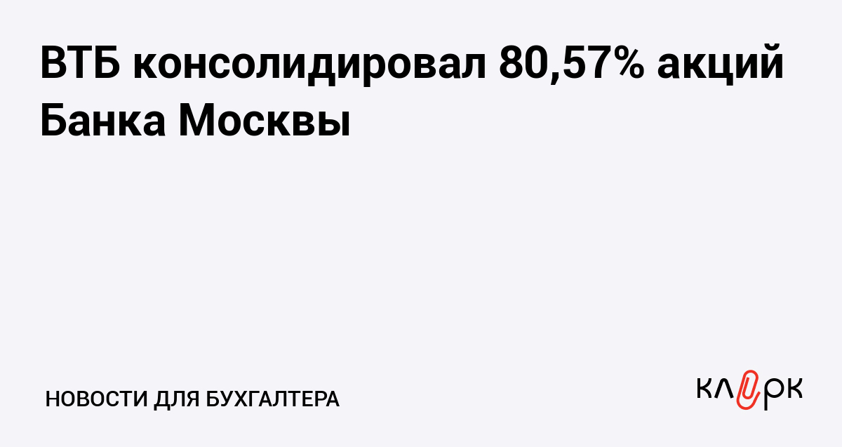 ВТБ консолидировал 80,57% акций Банка Москвы